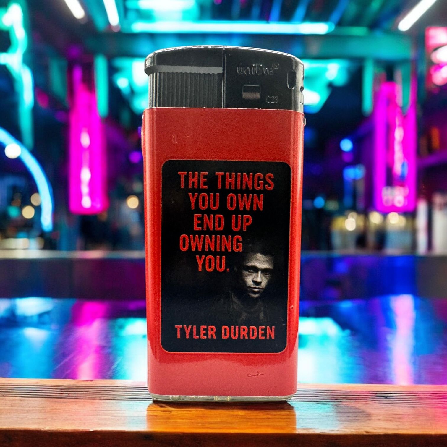 Dieses Feuerzeug trägt das vielleicht ikonischste Zitat aus Fight Club – und erinnert uns daran, wie schnell Konsum zur Kette wird.