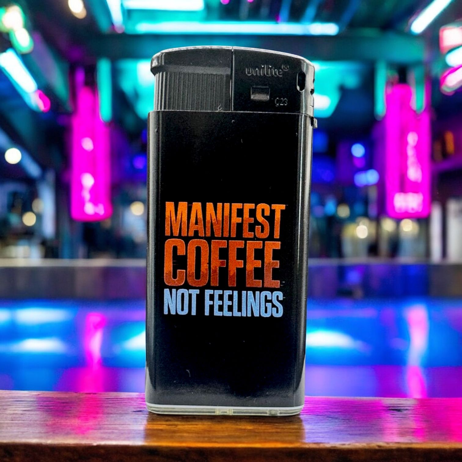Weil du morgens lieber Koffein als Emotionen brauchst. Dieses Feuerzeug sagt, was wir alle denken - nur stylischer. Mit glasklarem Statement auf mattem Body: Manifest Coffee. Not Feelings.