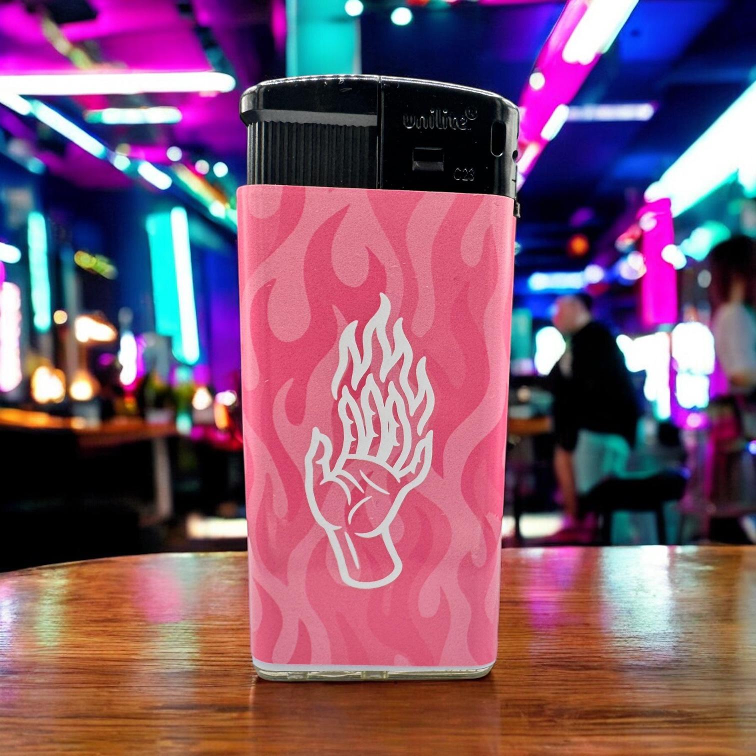 Dieses Design bringt alles visuell auf den Punkt: Confidence, Style & Flamme – auf knalligem Pink mit weissen Flammen und einem stilisierten Handzeichen, das „🔥“ ruft.